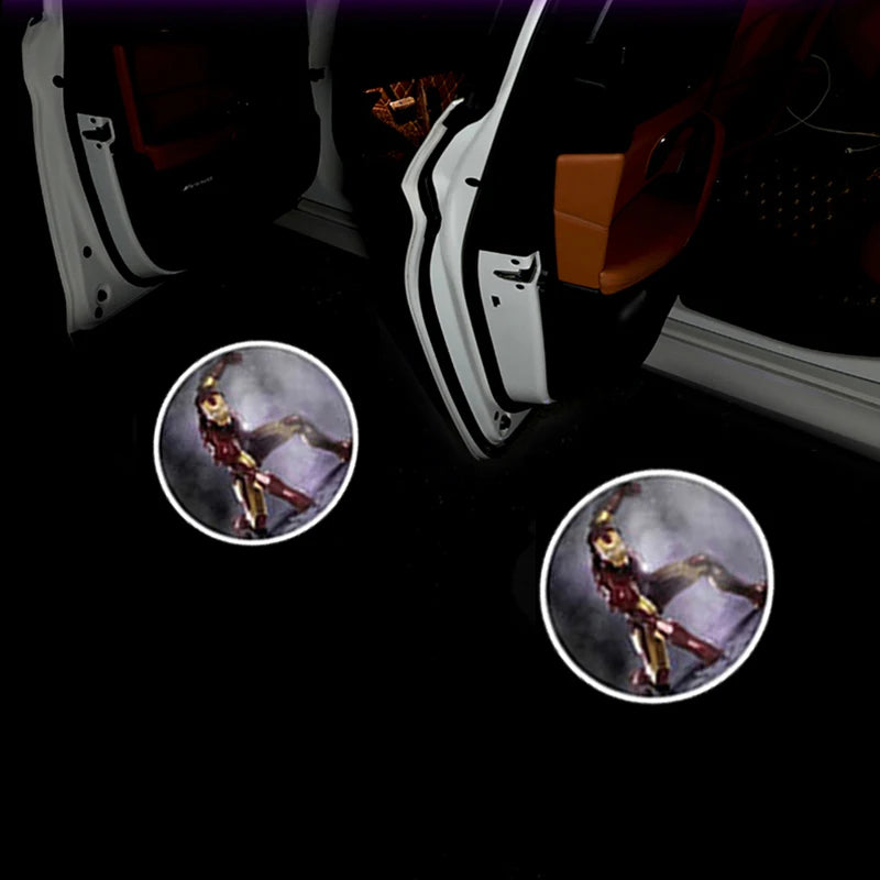 Add a superhero touch to every car entry! This 2-piece wireless LED projection lamp set displays Marvel icons like Deadpool, Spider-Man, Iron Man, and Captain America — a bold, fun upgrade for fans on the move.